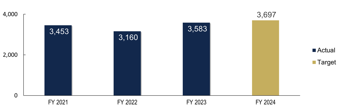 Growth in total number of degrees and certificates awarded. Target: reach 6,071 by FY2025